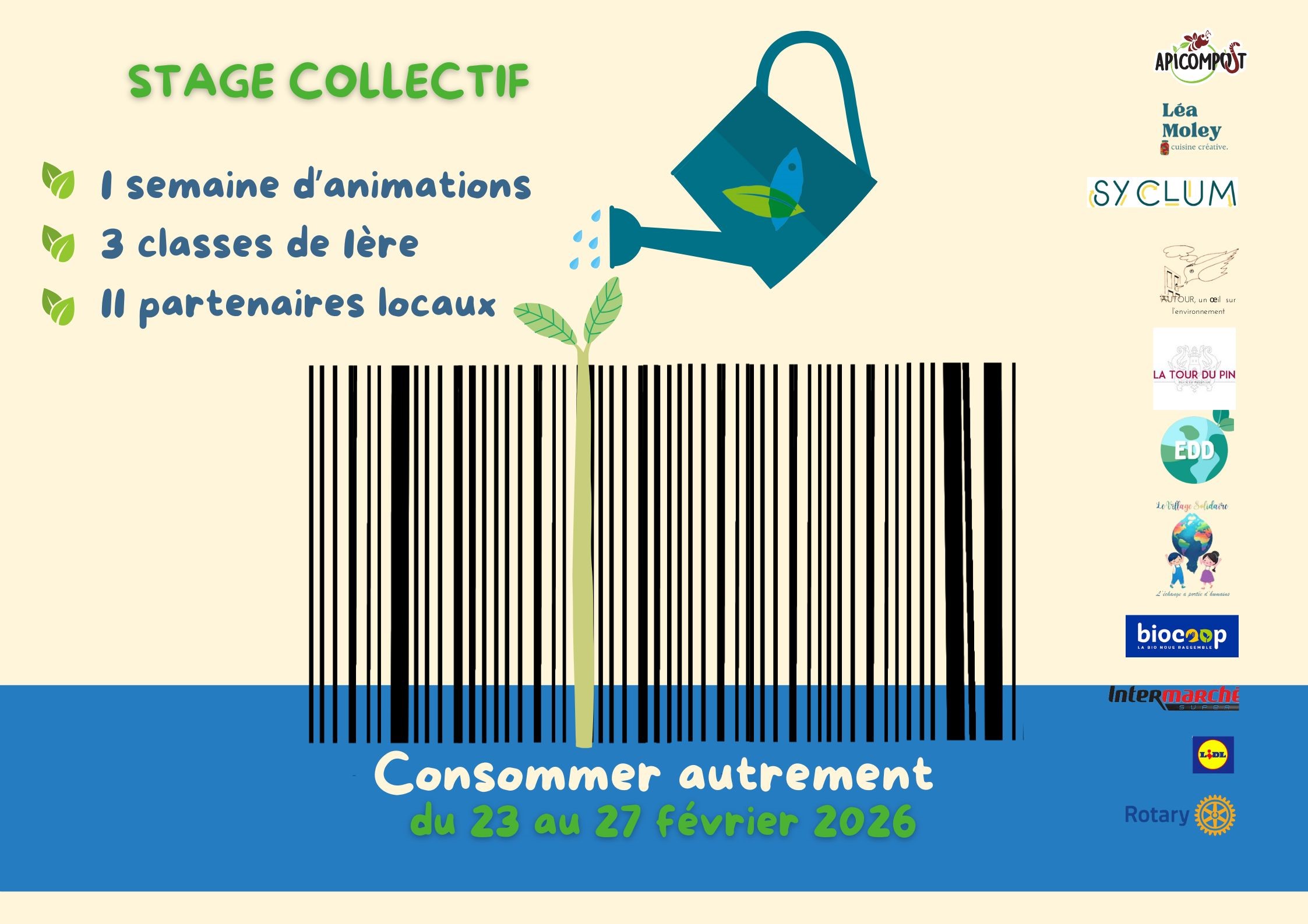 Du lundi 23 au vendredi 27 février 2026, les élèves des trois classes de 1ères suivront une semaine d’animations et de conférences autour du fil rouge « consommer autrement« . Les élèves s’inscriront pour constituer des groupes « défi » (8 au total). Chaque groupe se positionnera sur un thème. Il y aura ensuite une restitution en fin de semaine avec un jury qui attribuera des récompenses. Cette semaine sera aussi l’occasion de favoriser le bien vivre ensemble et le sentiment d’appartenance. La participation de différentes catégories du personnel marquera également un temps fort par et pour tous.