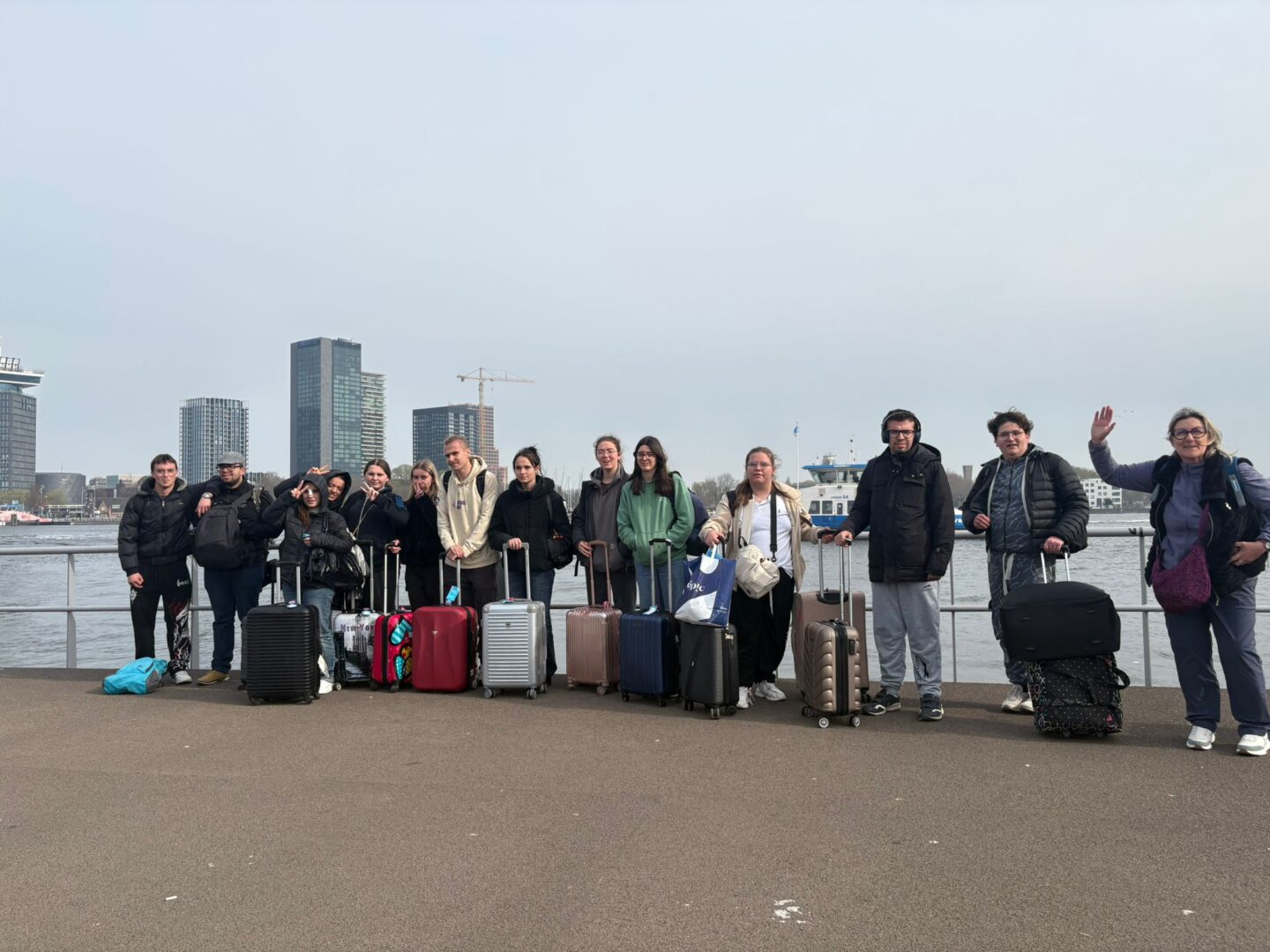 Après une nuit passée à bord du Flixbus, nos élèves ont découvert au petit matin la ville de Amsterdam. Malgré la fatigue, l’enthousiasme était bien présent ! Une petite photo souvenir pour immortaliser l’instant, puis direction l’auberge de jeunesse afin de déposer les valises.