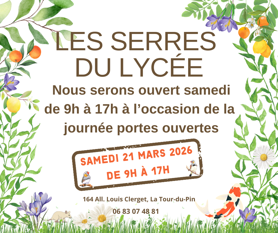 Le samedi 21 mars 2026 , ouverture de 9h à 17h à l’occasion de la JPO