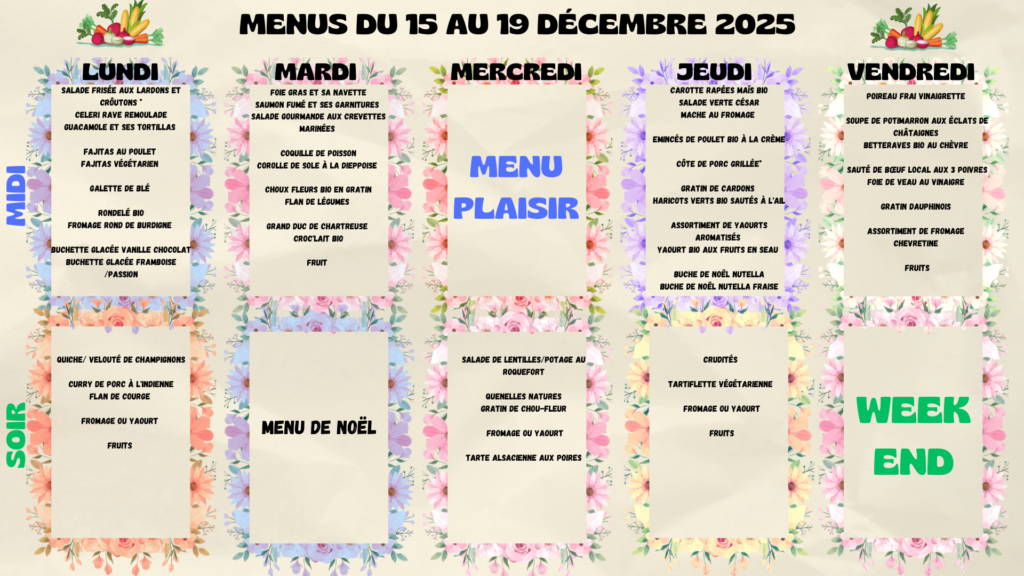 Le self est ouvert du lundi au vendredi, à partir de 11 h 45 jusqu’à 12 h 45.